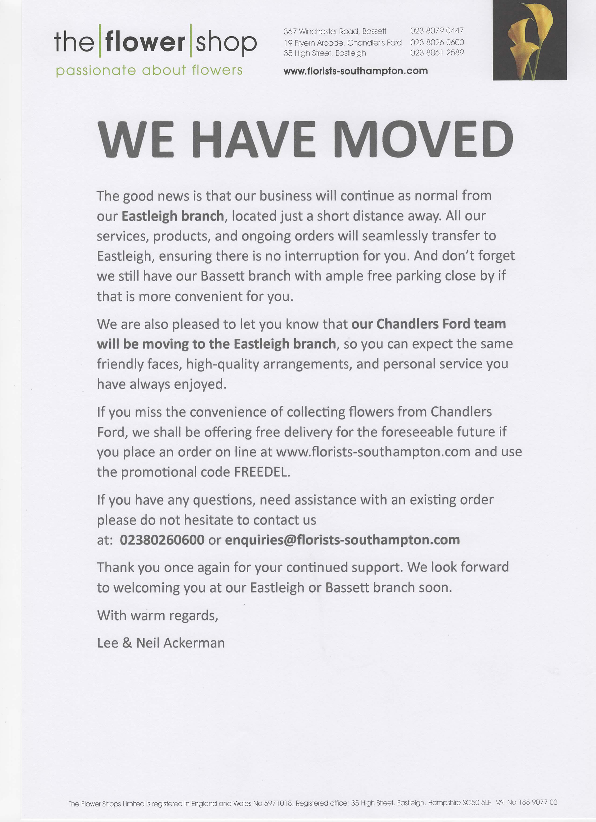 We have three branches of Flower Shops in Southampton located in Eastleigh, Bassett and Chandlers Ford. So whenever you need a Southampton Florist choose The Flower Shop - there is a branch near you.Why choose The Flower Shop in Chandlers Ford?
